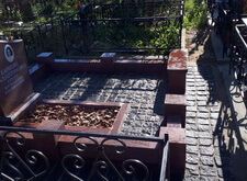 Облицевали бетон полированным гранитом, на территорию участка уложили брусчатку, предварительно приподняв памятник.